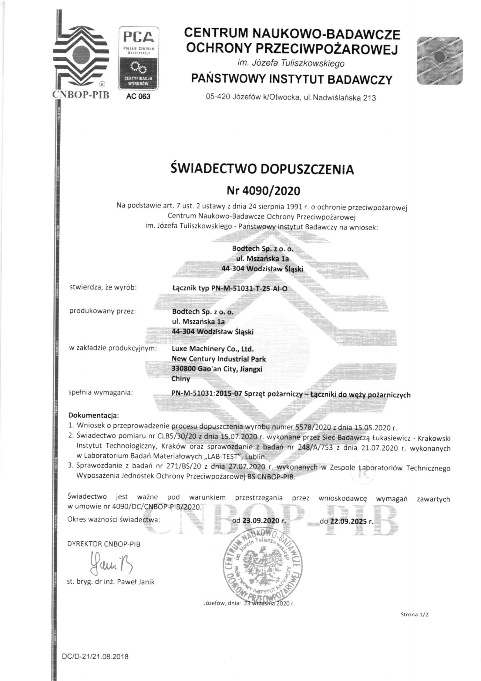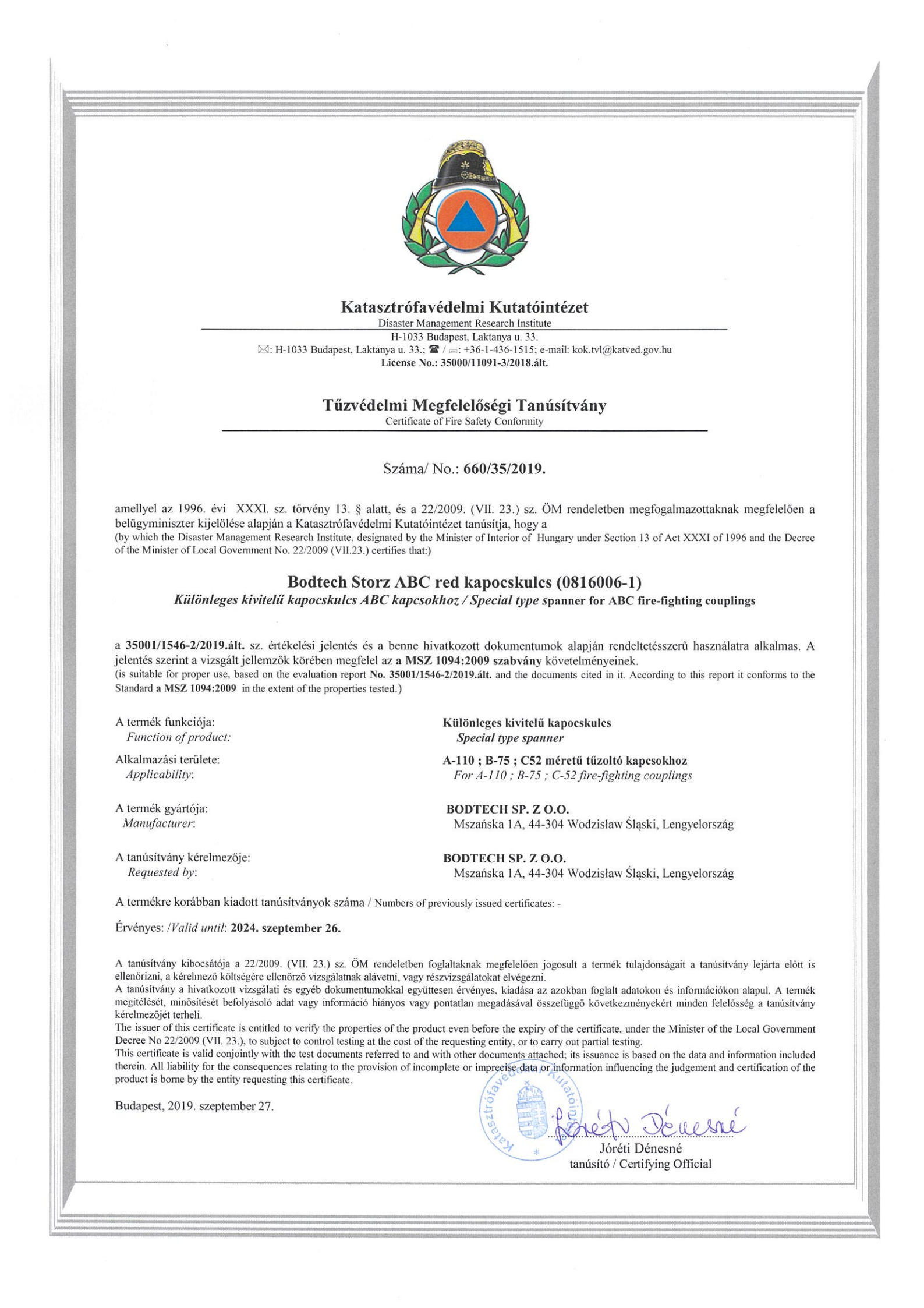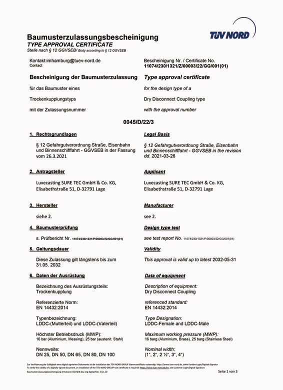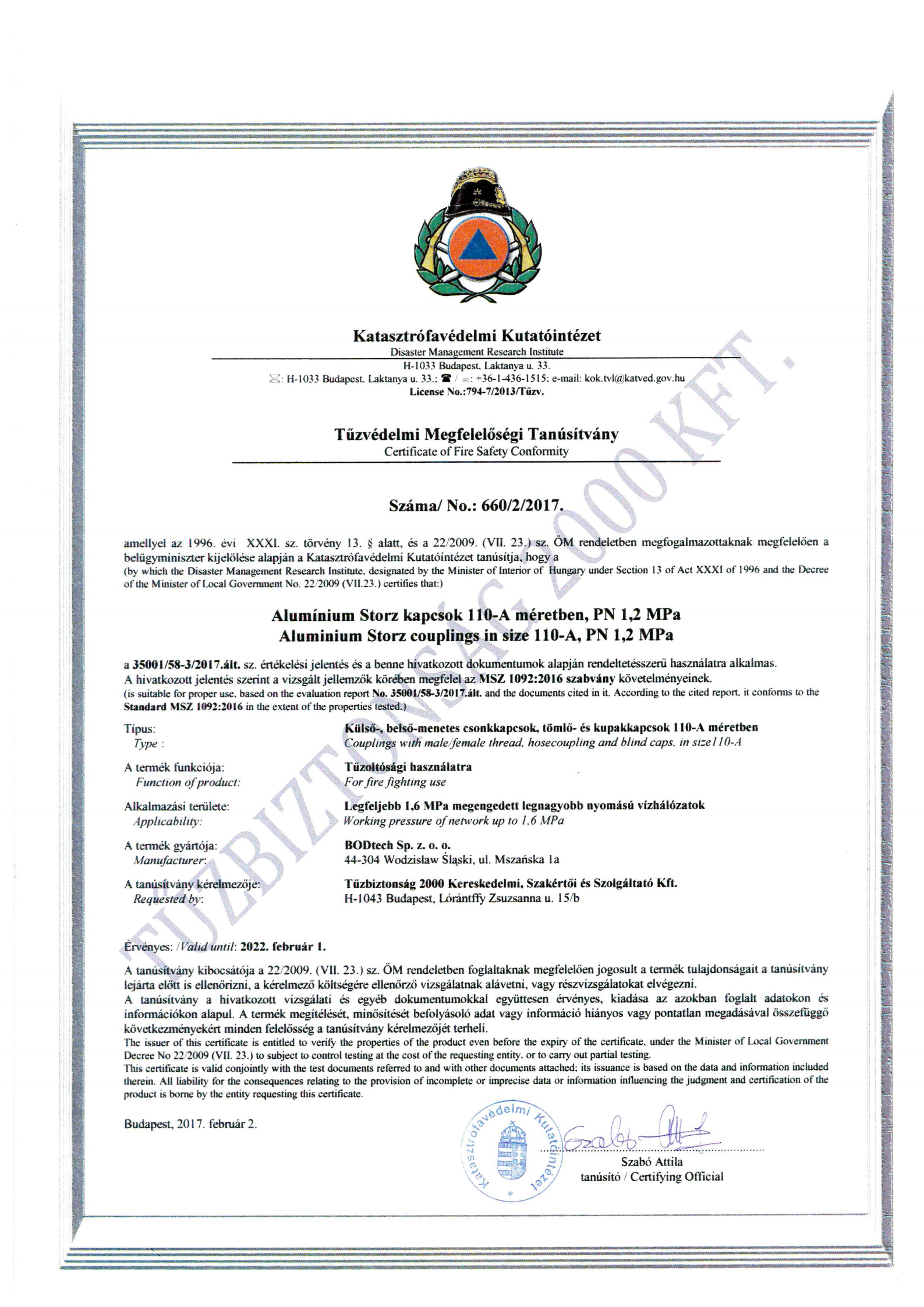 Storz 接頭證書