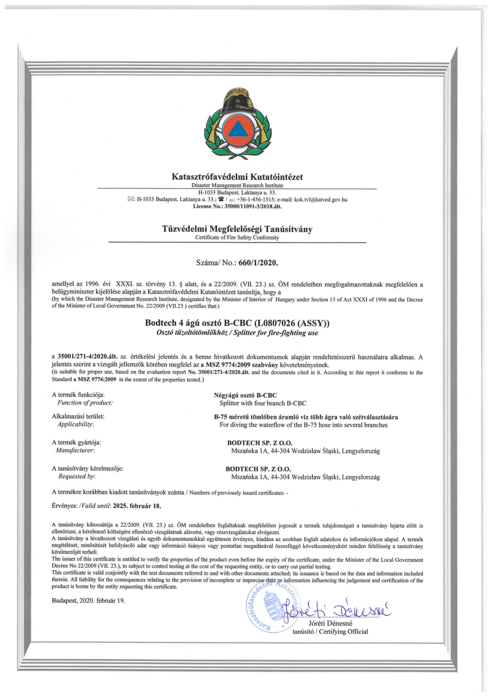 分流閥證書