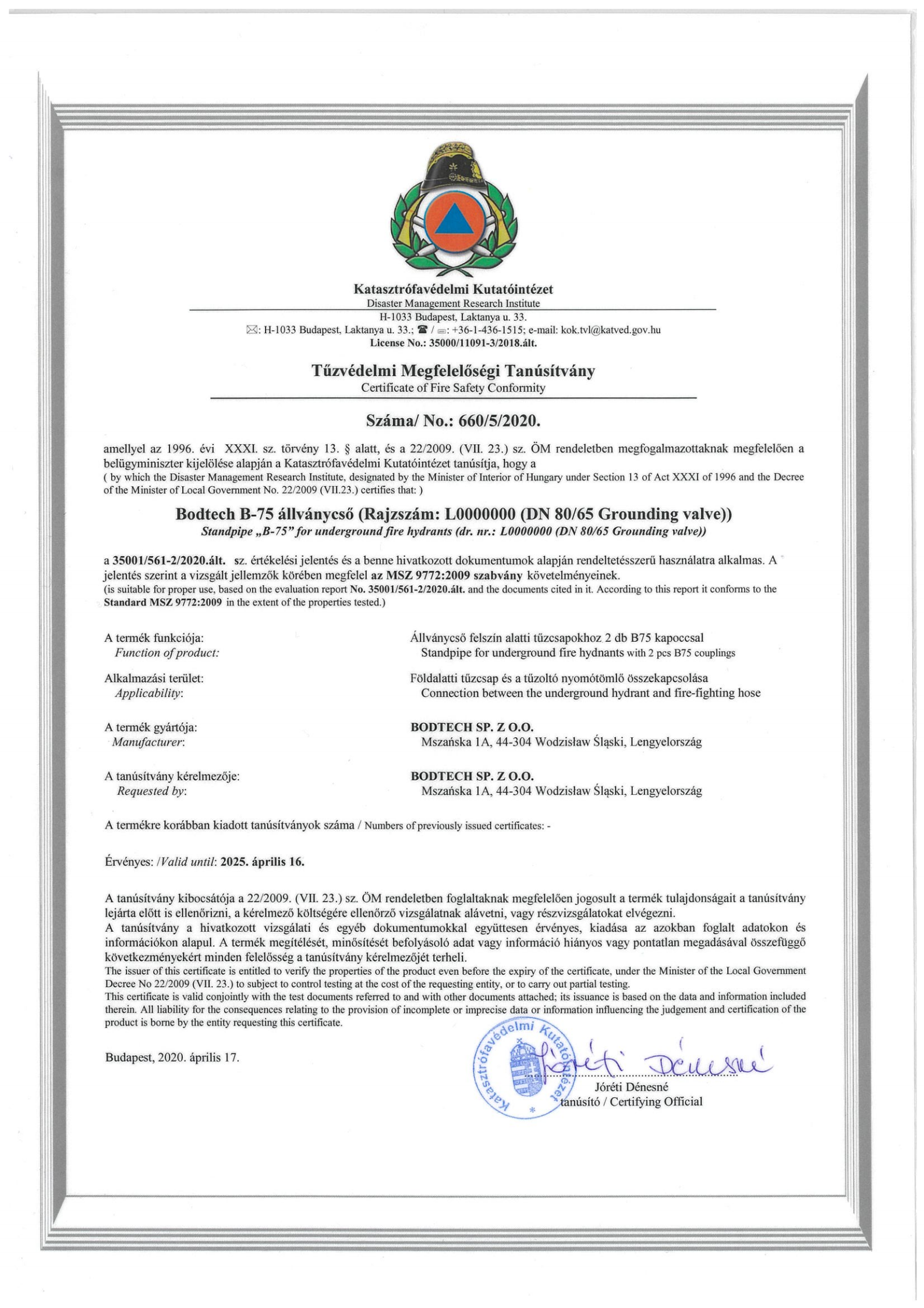 地接閥證書